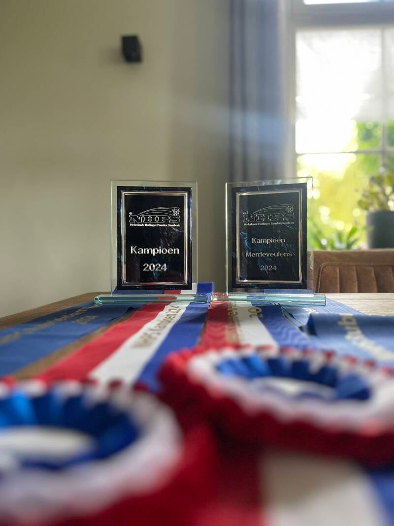 Voor A-Queen van 't Jentink (Liz. Sternkönig) waren dit het ELITE Merrie Predicaat, Algemeen Kampioen 2024 en de puntenlijst van de leistungsprüfung die ze met een 8.3, uitmuntend, heeft mogen afronden.