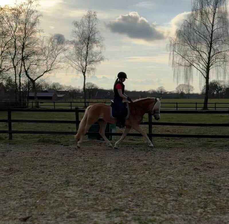 Alize van 't Jentink (Liz. Sternzauber X Ariska van 't Jentink) is thuis voor de 3e keer onder het zadel gereden.